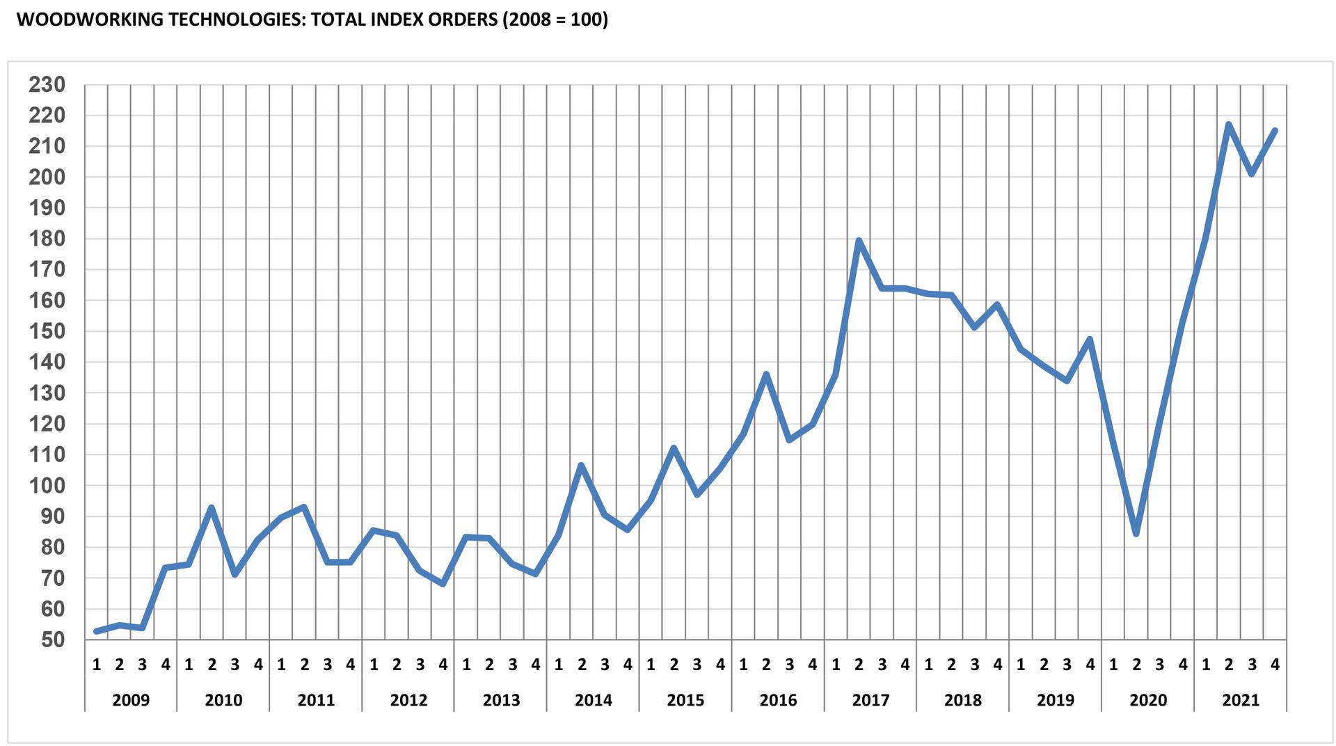 The year 2021 showed that the pandemic emergency has also acted as a powerful driver for production in many industries. One of these is certainly the sector of machinery, plants, equipment and tools for wood and wood-based materials, which experienced a "stimulating" 2021 with a growth of orders that could hardly be imagined.
