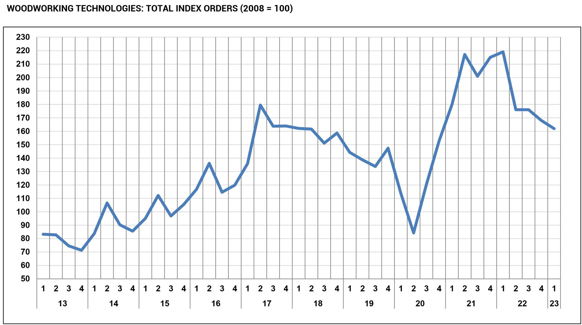 The first quarter 2023 confirmed a slowdown of orders for Italian woodworking and furniture technology. The quarterly survey by the Studies Office of Acimall (the association of Italian woodworking technology manufacturers) shows a negative trend for the fourth quarter in a row. This information must be evaluated accurately, especially considering the exceptional growth that characterized the second part of 2020 and the whole year 2021, recording a trend that has been unprecedented in the past decades. The slowdown that started in the second quarter of 2021 can be considered “physiological”, but the negative trend in the January-March 2023 period causes some worries.