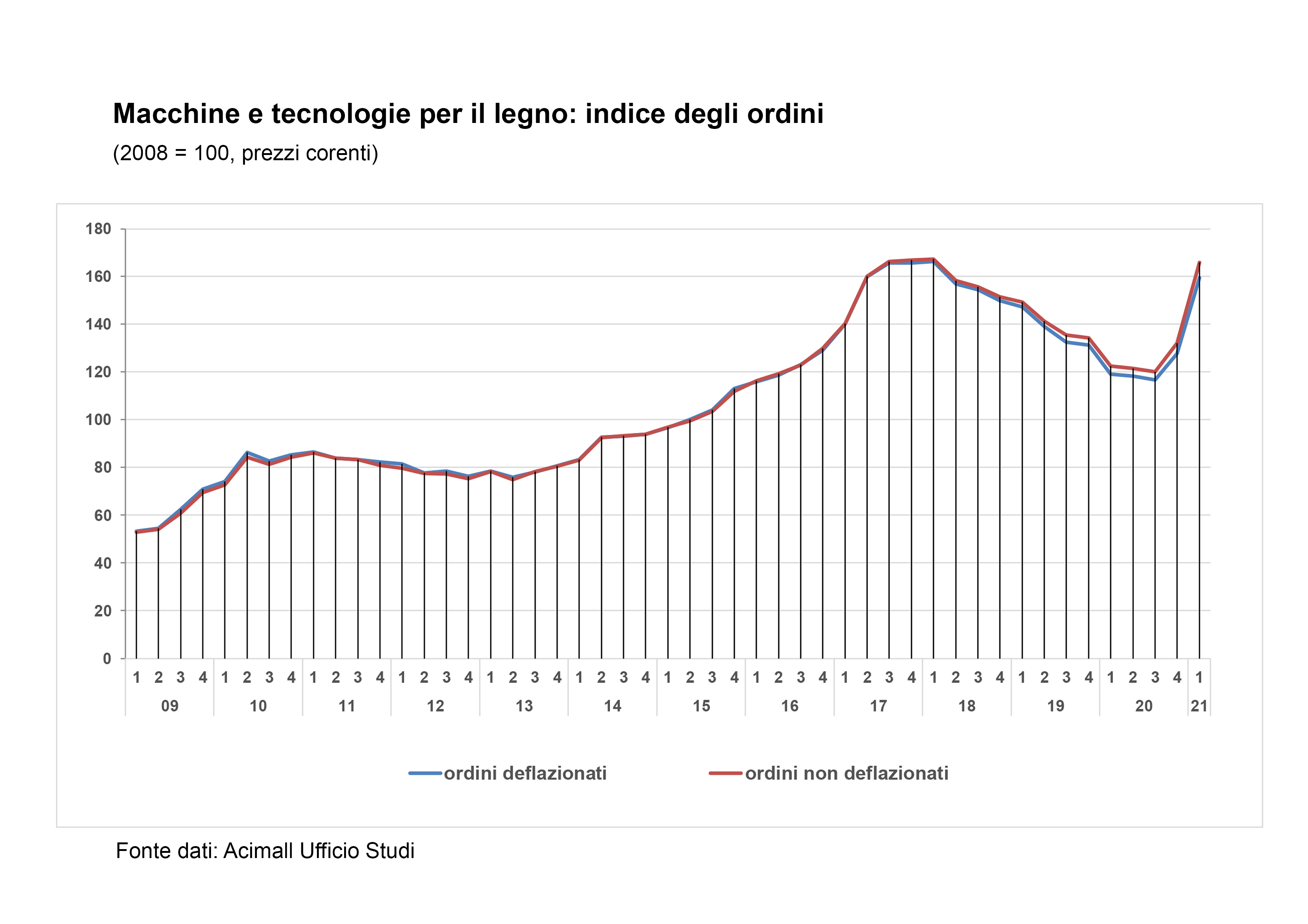 “Non ci poteva essere modo migliore di iniziare il nuovo anno. I dati elaborati dal nostro Ufficio studi confermano quella che da tempo era una “forte sensazione”: il 2021 è iniziato sotto i migliori auspici, con una domanda di tecnologie per l’industria del mobile e il legno in forte crescita”. Luigi De Vito, presidente di Acimall – l’associazione che riunisce i costruttori italiani del comparto, le tecnologie, gli utensili le attrezzature per la lavorazione del legno e dei suoi derivati – commenta così l’eclatante dato dei primi novanta giorni di quest’anno, che vede gli ordini crescere del 58 per cento rispetto al primo trimestre 2020. Molto positivo l’andamento degli ordini dai mercati esteri, aumentati del 52 per cento; addirittura eclatante la domanda interna, cresciuta dell’87,8 per cento.