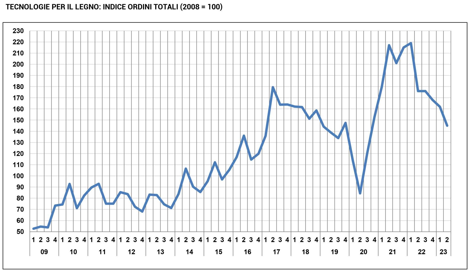 Nel periodo aprile-giugno di quest’anno, infatti, gli ordini segnano una contrazione pari al 17,8 per cento rispetto allo stesso periodo 2022, un risultato al quale contribuiscono sia il meno 18,7 per cento registrato sulle commesse in arrivo da oltre confine che il meno 13,8 della domanda dal mercato domestico. Il risultato conferma i dati registrati nei quattro trimestri precedenti, tutti di segno negativo, e riporta l’indice generale del settore ai livelli del 2019. Dunque, come dicevamo, un ritorno alla normalità dopo la frenata determinata dalla pandemia e la successiva ripresa che ha garantito alle imprese assi di crescita mai riscontartisi negli ultimi decenni.